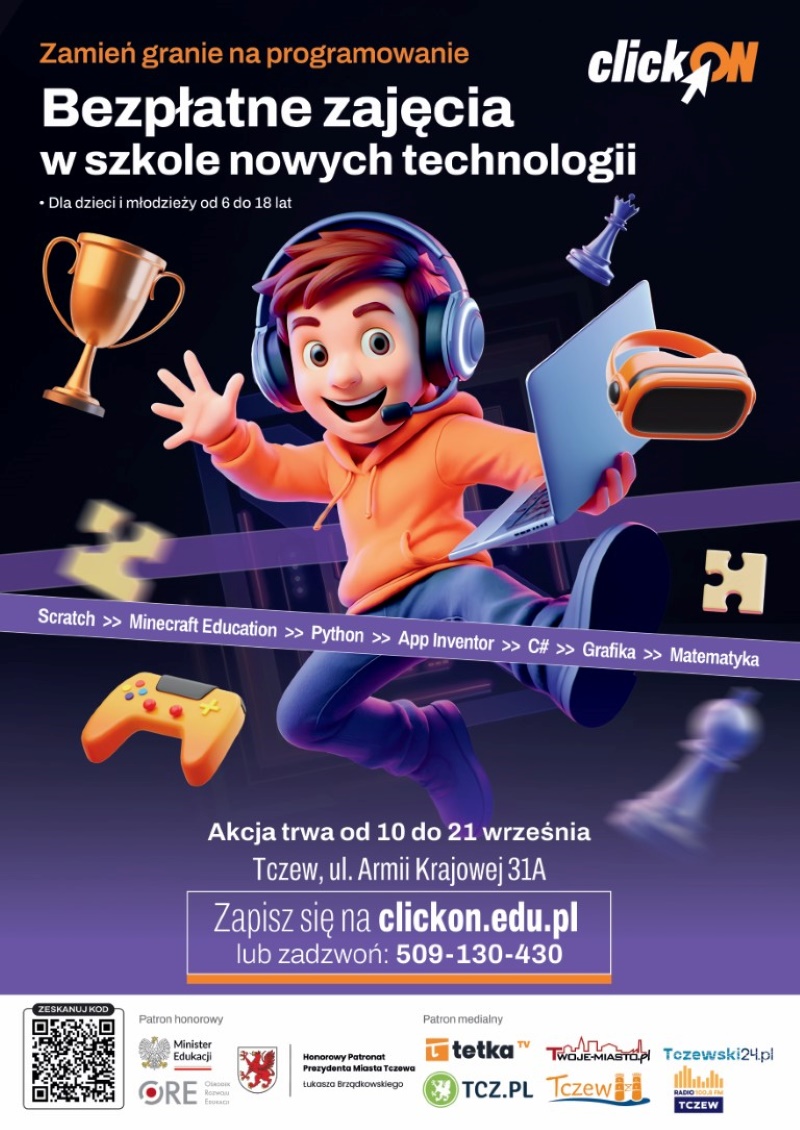 Od 10 do 21 września 2025 roku w kilkudziesięciu miastach w Polsce odbędą się bezpłatne warsztaty programistyczne w ramach ogólnopolskiej akcji ClickON – „Zamień granie na programowanie”.