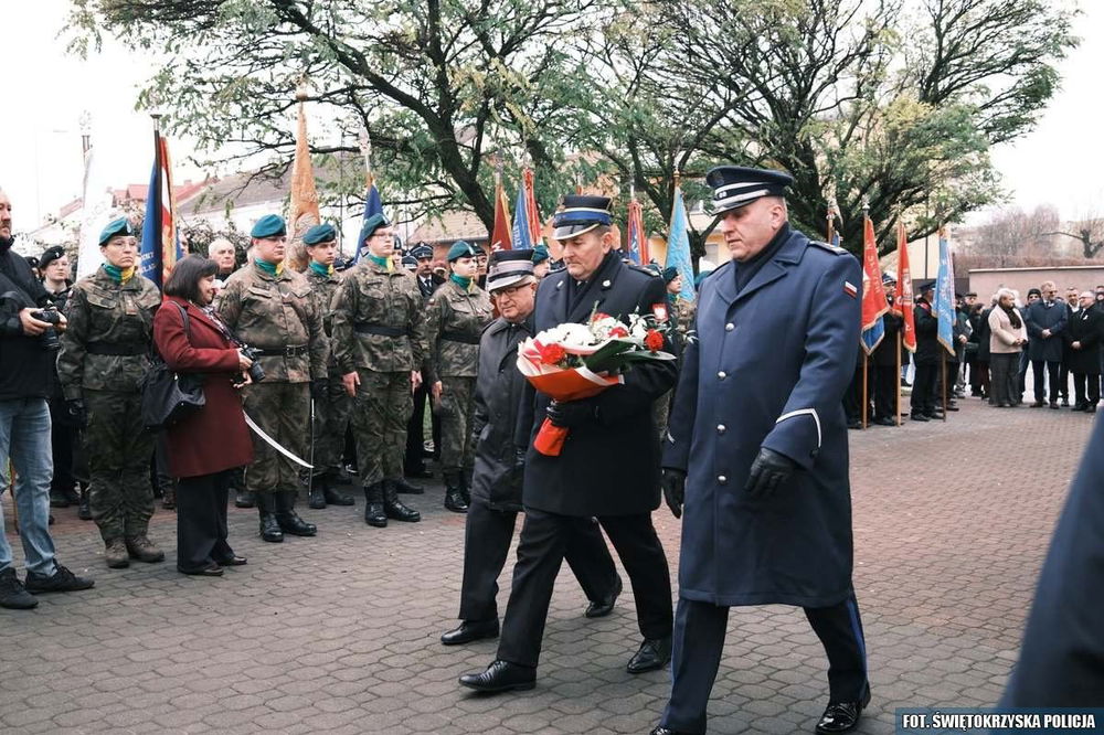 Pod Pomnikiem Wdzięczności przy ulicy Marszałka Józefa Piłsudskiego pełniący obowiązki Komendanta Powiatowego Policji w Końskich mł. insp. Krzysztof Panaszewski wraz z Komendantem Państwowej Straży Pożarnej bryg. Ryszardem Stańczakiem oddali honor i złożyli wiązanki. Uroczystości kontynuowano przemarszem pocztów sztandarowych do Kolegiaty pw. św. Mikołaja, gdzie odprawiono mszę świętą.