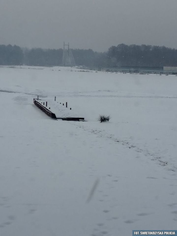 Wchodzenie na lód jest bardzo niebezpieczne. Pod warstwą śniegu trudno ocenić grubość lodu i obecność przerębli dlatego apelujemy o rozsądek i ostrożność - KPP w Końskich