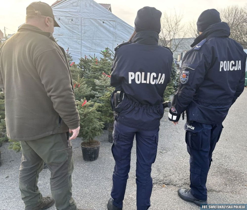 Policjanci wraz ze Strażą Leśną z Nadleśnictwa Barycz patrolują lasy i targowiska w powiecie koneckim, kontrolując transport i sprzedaż choinek oraz drewna, aby zapobiegać kradzieżom i nielegalnej wycince przed świętami.
